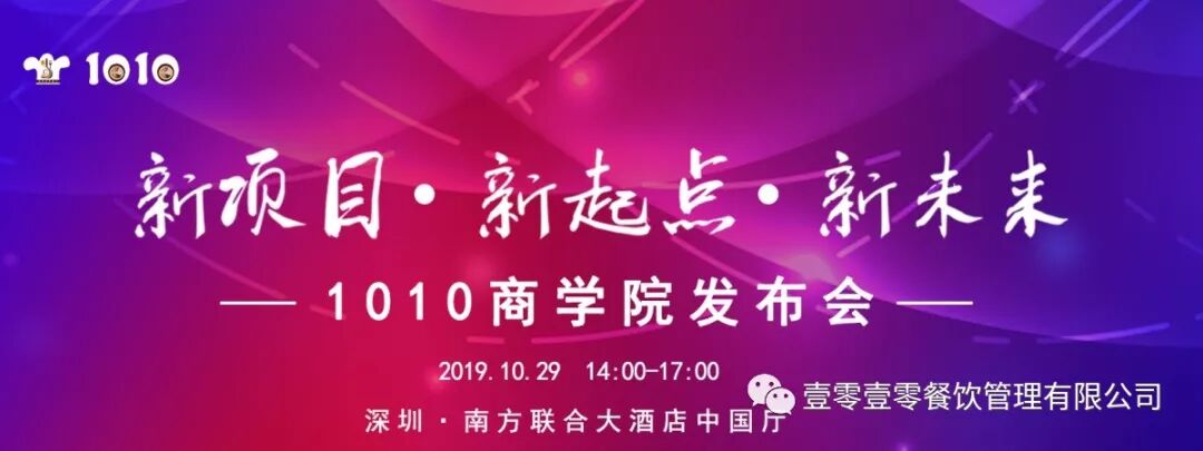我们诚挚邀请您拨冗出席参加于2019年10月29日下午13:30-17:00在深圳南方联合大酒店中国厅隆重举行的1010商学院“新项目·新起点·新未来”发布会,大咖云集,精英荟萃,合作、共赢、创新,一起深入理解新经济时代下的新项目、新思维和新模式。